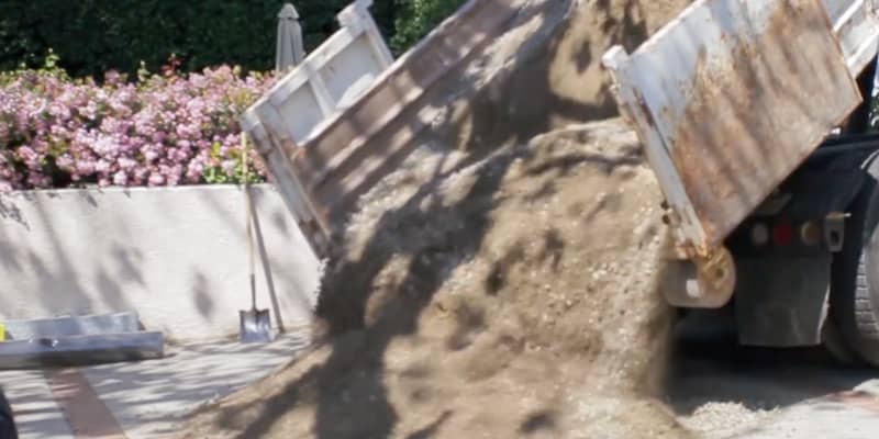 Gravel DG Mix—the next step is to install the base material. This is a special mixture of gravel and sand which allows for proper drainage. Install 3 inches in depth. For a non-pet landscape installation, the base material should be installed to a depth of 3 inches.