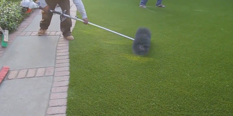 The final grooming step involves power brushing the turf once again, lightly, to force the Envirofill granules into the base of the turf for settling and optimal stability. Follow up the process to remove any excess debris.